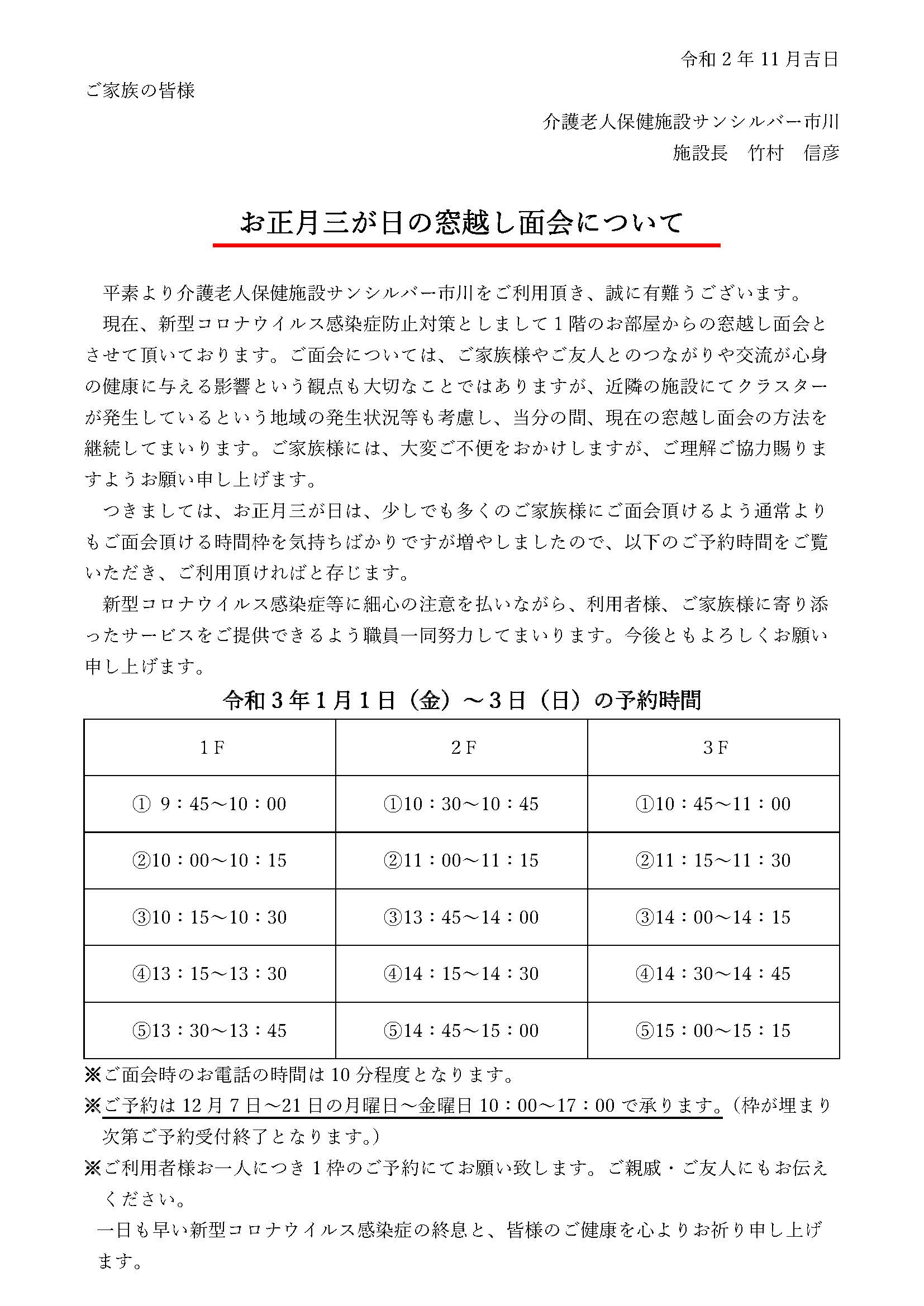 お正月三が日の窓越し面会について