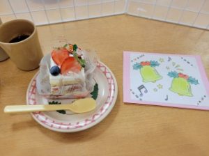 おいしいケーキを召し上がっていただいたり、ご利用者様もサンタクロースに