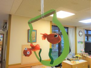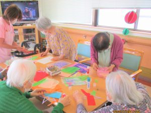 ご利用者様とスタッフの共同制作の作品でとても華やかな雰囲気でした。ご面会時、ご覧いただけましたでしょうか😊