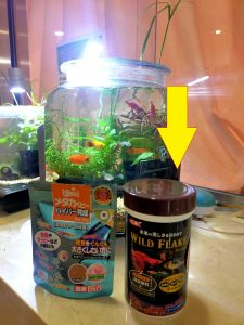 最近、エサを右側の黒いエサに変えたところ、食いつきが違うんです!とっても美味しいのでしょうね😋