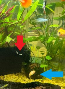 赤➡がグッピー 青➡はおそらく先日お伝えしたプラティの赤ちゃんです。あっという間にずいぶん大きくなりましたね😊