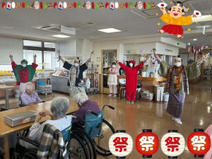 職員は赤いお祭り法被を着て盛り上げました👘