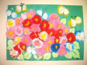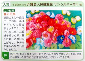 当施設 3階のご利用者様と職員の作品「春のお花畑」です。 月刊デイの2月号に掲載されました!(祝)