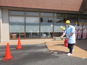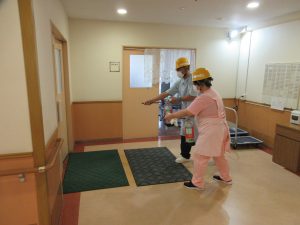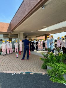 避難誘導終了次第、ご利用者様、職員の人数を確認し、消防隊長に報告します。