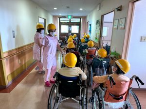 避難誘導終了次第、ご利用者様、職員の人数を確認し、消防隊長に報告します。