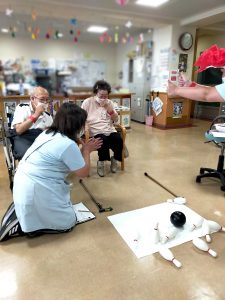 輪をお隣の方に渡していきます😊 行って戻ってどちらが先か!?