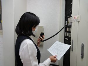 まず、事務職員がアナウンスを行います。