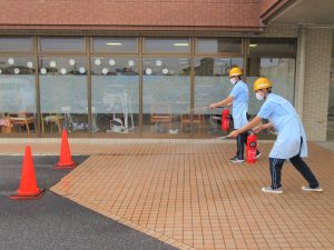施設の外では各部署の職員が消火器の使い方を学びました🧯